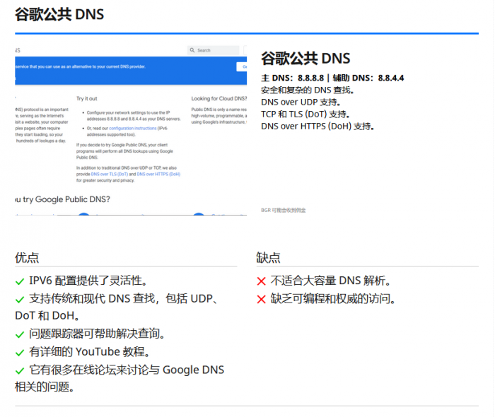 Google Public DNS 服务器可谓是最好的 DNS 查找服务提供商之一。它提供快速可靠的互联网连接。它支持多种高级功能,例如 DNS over UDP 和 TLS 支持以及 DNS over HTTPS (DoH),以实现可靠的连接。