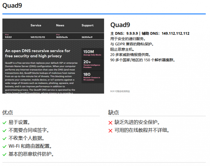 对于免费服务,Quad9 提供了物超所值的套餐,以确保安全可靠的互联网访问。