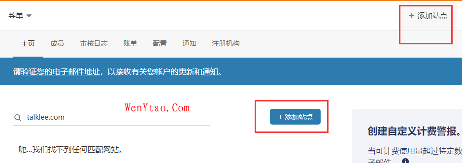 登录之后我们需要添加站点域名,也可以直接在顶部导航点击添加站点,如图: