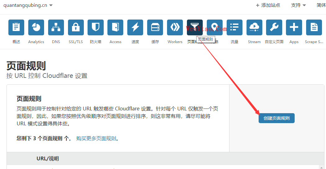 点击完成,然后等待DNS生效,一般来说很快,找到“页面规则”导航,