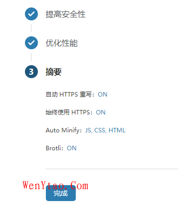 设置完成后点击提交按钮,回到cloudflare网站,点击“完成,检查名称服务器”按钮,在新页面设置,开始使用,分别会有三个选项卡,如图